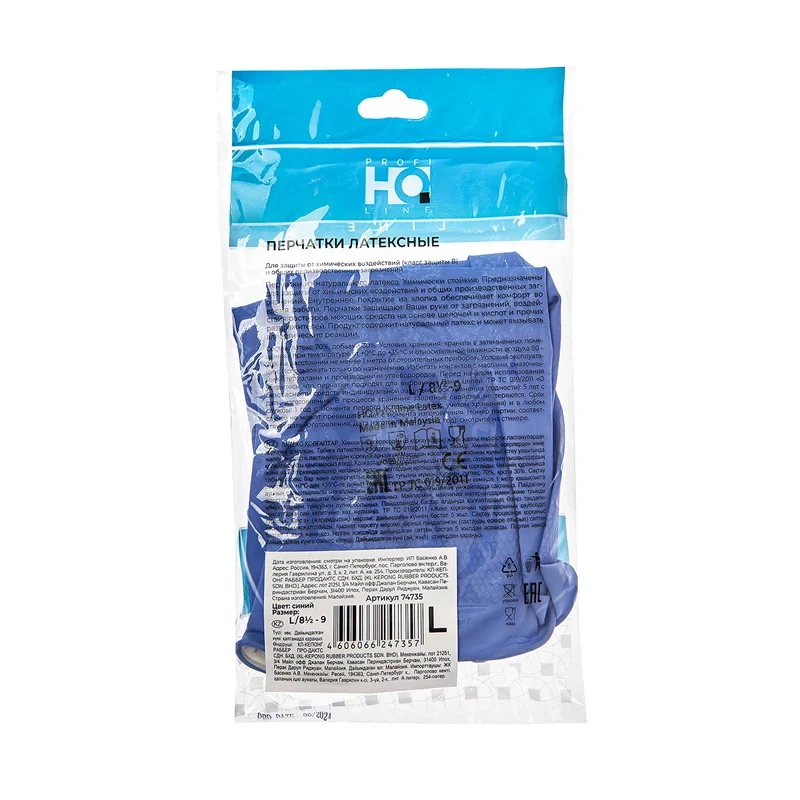 Перчатки Home Queen Profline латексные синие химически стойкие размер L