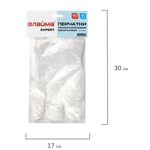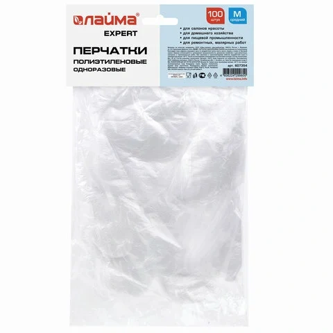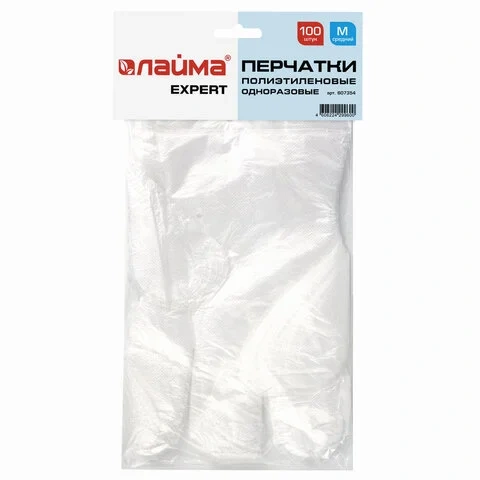 Перчатки полиэтиленовые одноразовые, ОТРЫВНЫЕ, КОМПЛЕКТ 50 пар (100 шт.) размер М, LAIMA, 607354