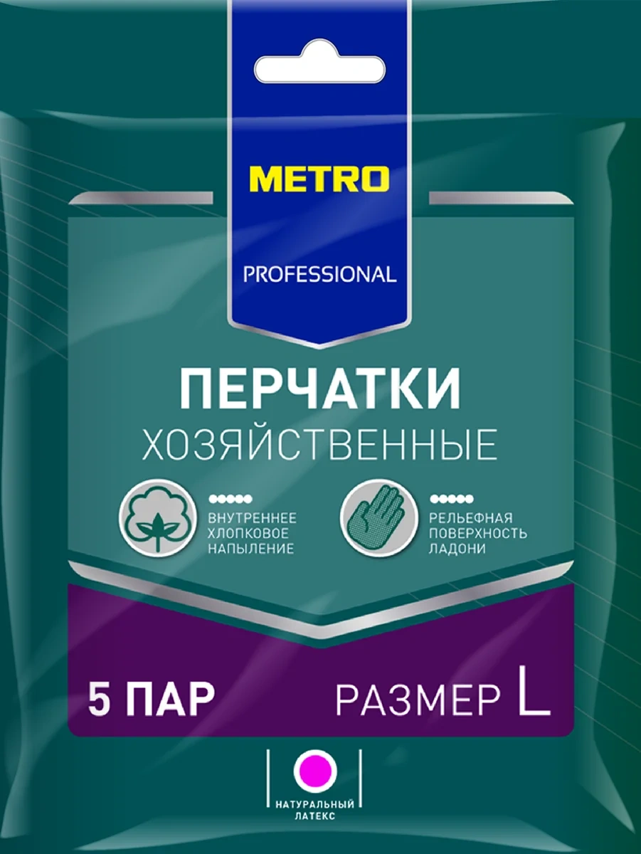 METRO PROFESSIONAL Перчатки хозяйственные латекс желтые L, 5 пар