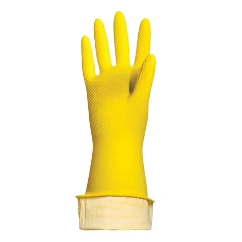 Они изготовлены из прочного латексного материала, что гарантирует защиту рук от механических внешних повреждений. Классический размер S подойдет на руку небольшого размера. В комплекте - 1 пара. Внутреннее хлопчатобумажное напыление обеспечивает гипоаллергенность и гигроскопичность. Рельефная поверхность препятствует скольжению предметов. Тип манжеты: закатанный край. Нельзя использовать при работе с растворителями и электрическим током. Данные перчатки можно использовать несколько раз. Цвет - желтый.