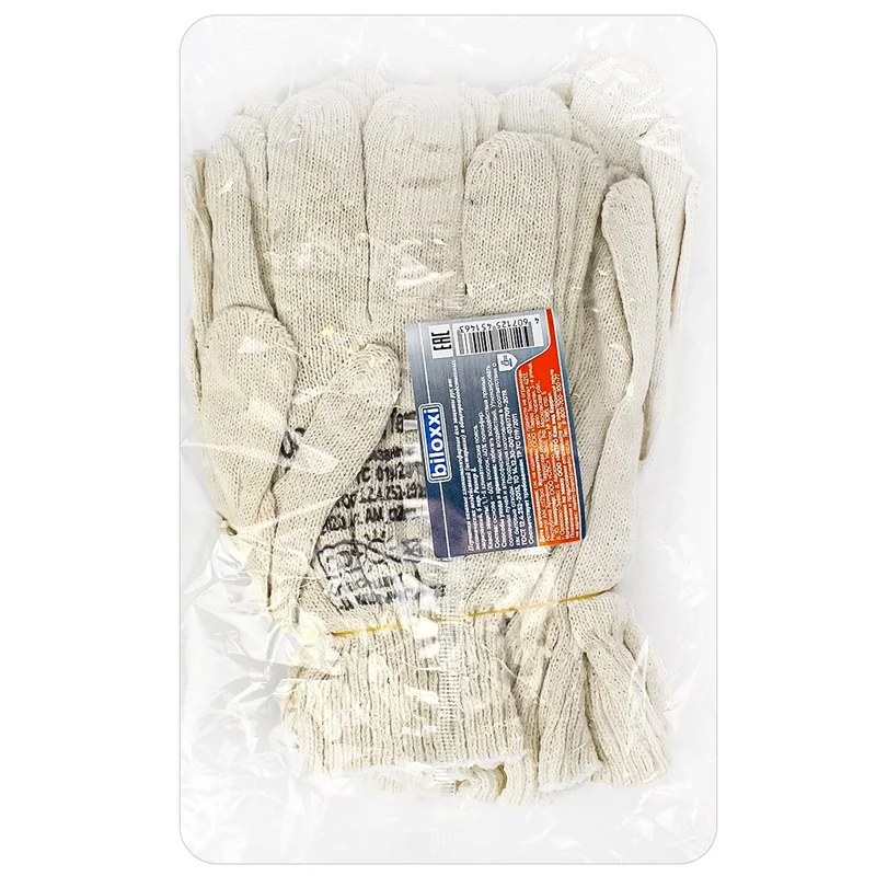 Перчатки хозяйственные Biloxxi хлопчатобумажные без ПВХ-покрытия 4.6 x 21 x 29см, 6 пар