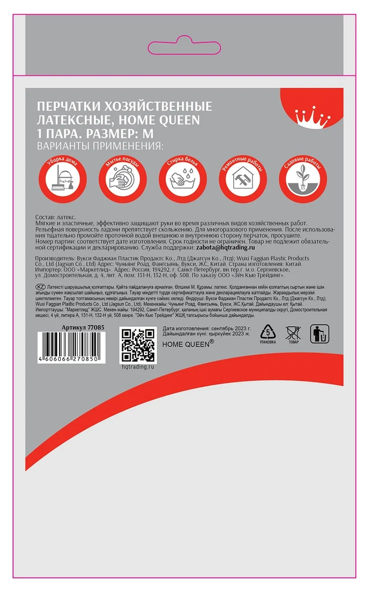 | Комплектация | перчатки хозяйственные - 1 шт. |