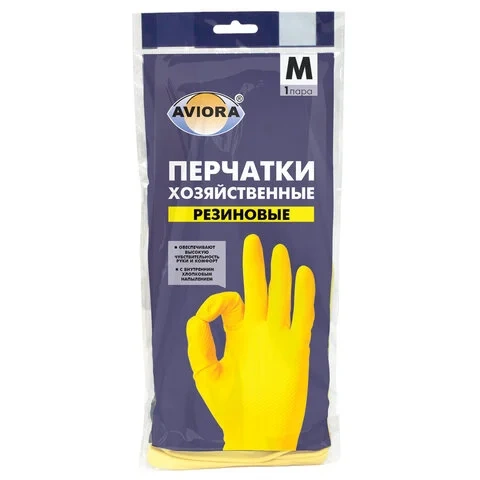 Перчатки латексные хозяйственные Aviora р.М, многоразовые