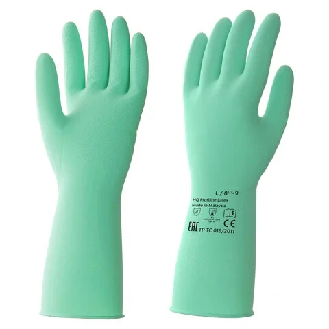 Перчатки латексные хозяйственные Hq Profiline р. L, зеленые,73586