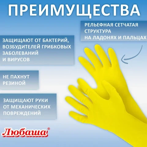Перчатки латексные хозяйственные Любаша Эконом р.М, желтые