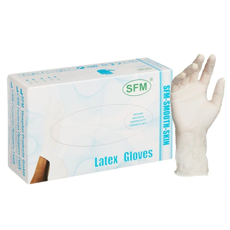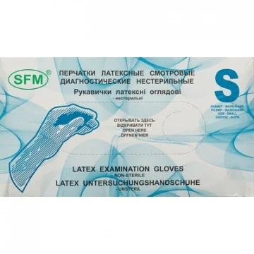Перчатки латексные хозяйственные Sfm р. S, 6.1г, нестерильные, с пудрой, 50 пар