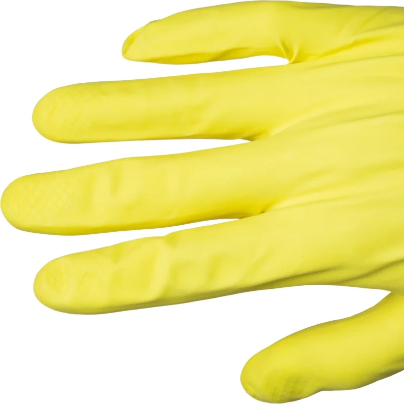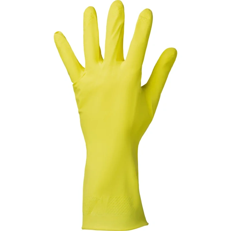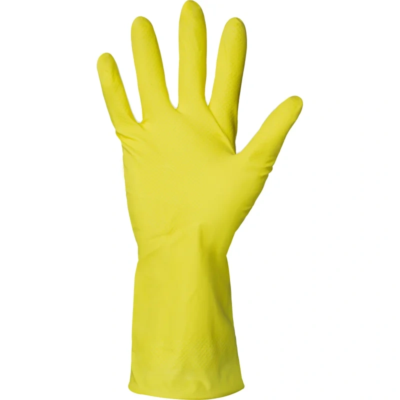 Перчатки хозяйственные латексные Luscan с внутренним хлопковым напылением, размер 9 (L). Вес пары: 30 г. Манжета — закатанный край. Текстурированная поверхность на пальцах и ладони для лучшего сцепления с поверхностью. Внутреннее хлопковое напыление способствует более легкому надеванию перчаток на руки. Закатанный край манжеты для фиксации перчатки на запястье также дополнительно усиливает прочность к разрывам и защищает от проникновения капель воды в перчатку. Предназначены для защиты рук от вредного воздействия агрессивных моющих и чистящих веществ во время уборки, стирки, мытья автомобиля, садовых работ. Поставляются в упаковке с европодвесом. Количество в упаковке 1 пара. Количество упаковок в транспортном коробе 240.