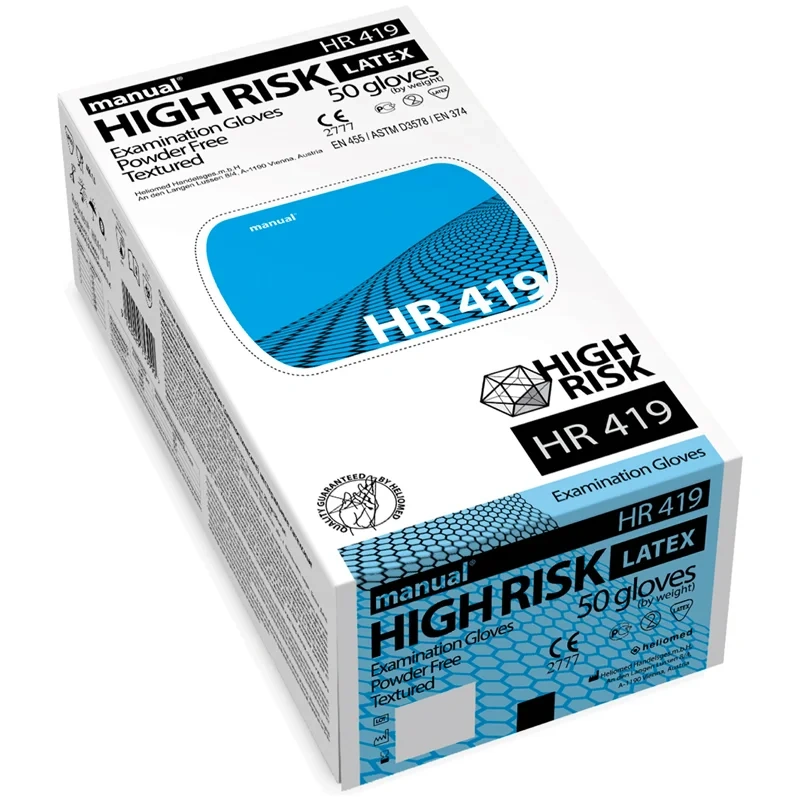 Перчатки латексные Manual High Risk HR419 M, 50шт., неопудренные, особо прочные, карт