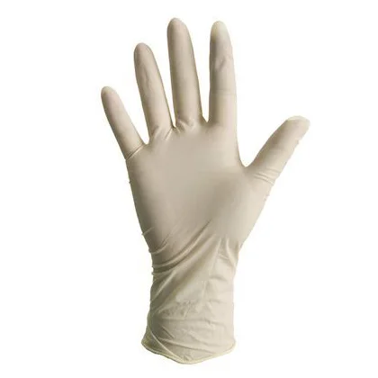 Перчатки из натурального латекса, опудренные, нестерильные, поверхность гладкая, цвет белый, форма плоская, манжета с валиком.