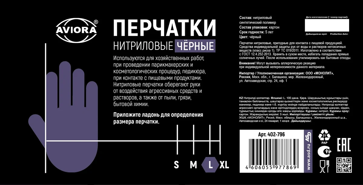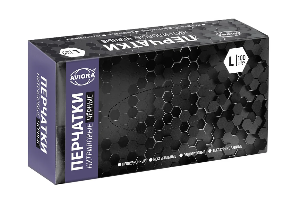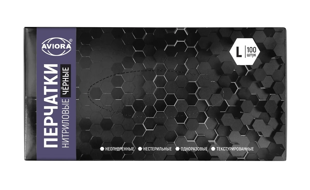 Перчатки нитриловые Aviora р.L, черные, 50 пар