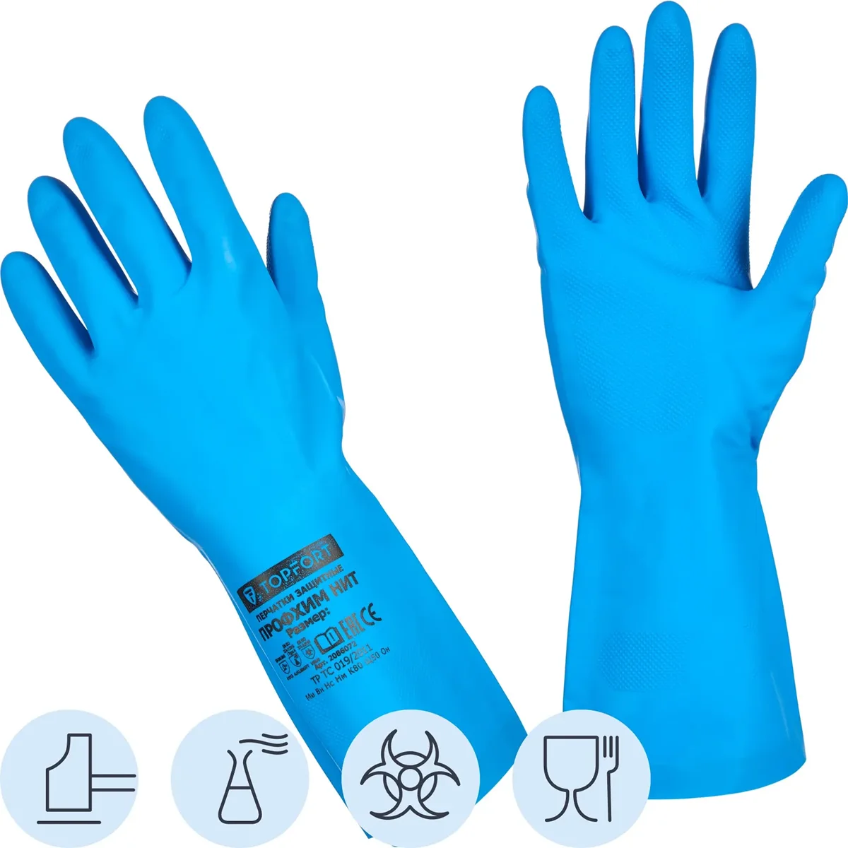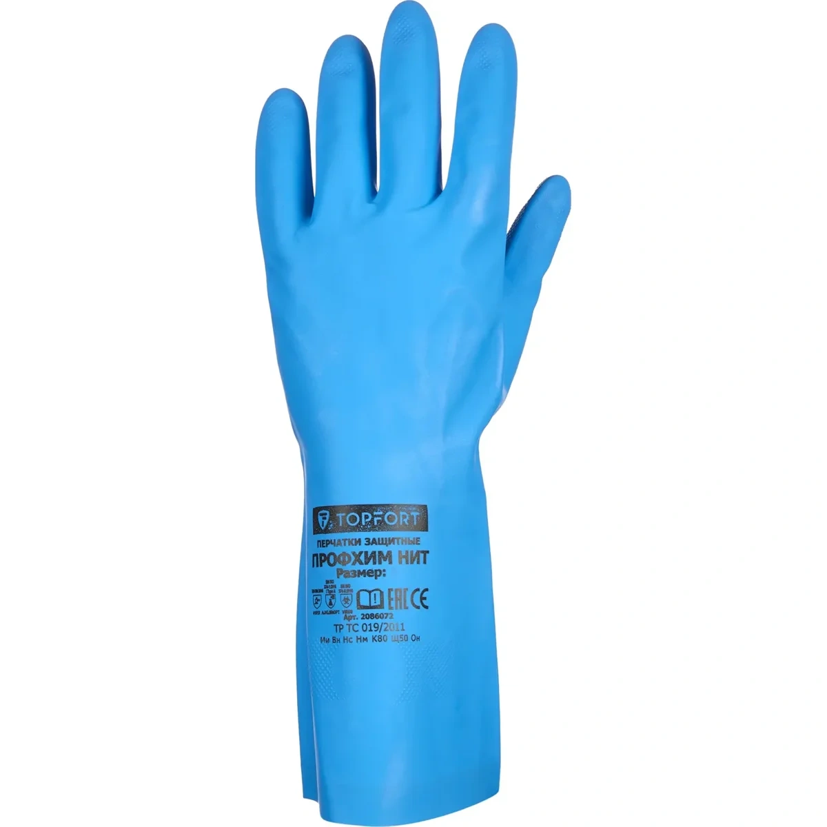 Перчатки КЩС нитриловые TOPFORT Профхим Нит К80 Щ50 цв.синий разм 9,ПС