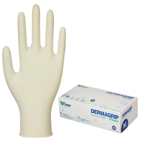 Перчатки латексные Dermagrip Classic р.М, белые, 50 пар