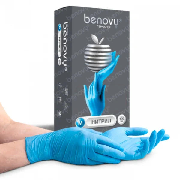 Перчатки нитриловые Benovy Nitrile Chlorinated BS р.M, голубые, 100 пар