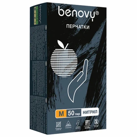 Перчатки нитриловые Benovy Nitrile MultiColor BS р.М, черные, 50 пар