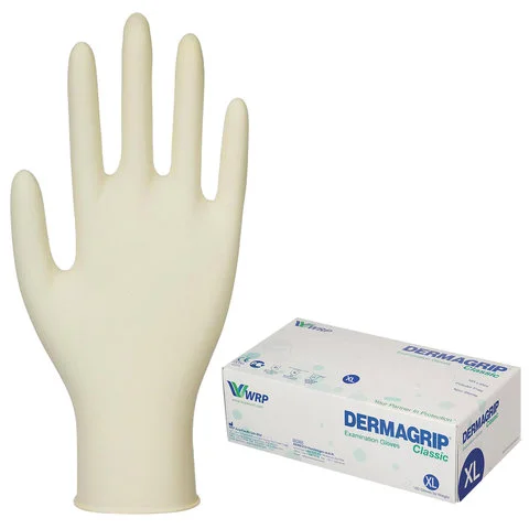 Перчатки латексные Dermagrip Classic р.XL, белые, 50 пар