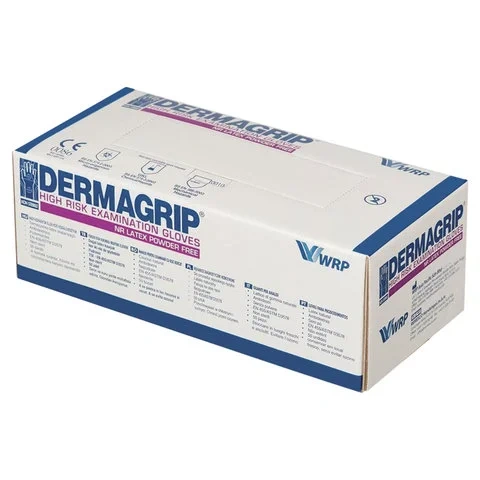 Перчатки латексные Dermagrip High Risk р.М, синие, сверхпрочные, 25 пар