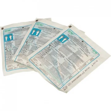 Дополнительные свойства: манжеты перчаток вывернуты наизнанку, что упрощает надевание. При надувании перчаток на тыльной стороне ладони отображается размер перчатки (идентификация размера).