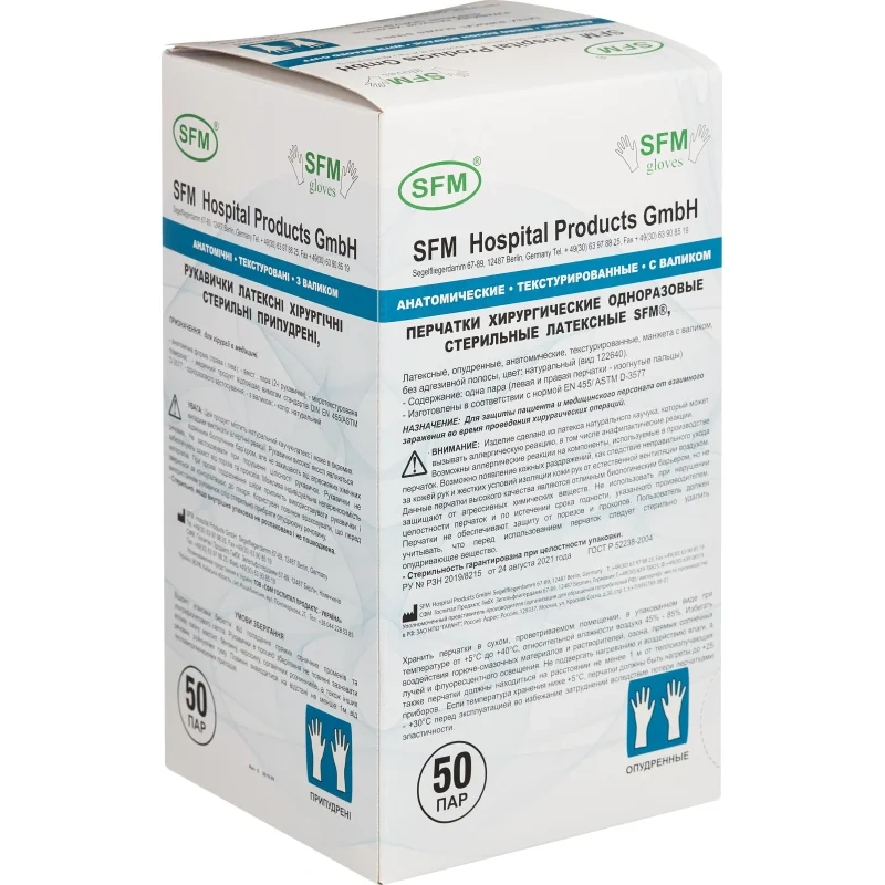 Перчатки медицинские хирургические латексные SFM стерильные опудренные размер 7,5 (100 штук в упаков