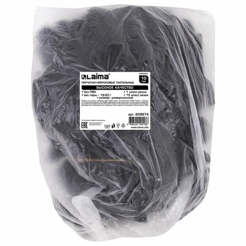Перчатки НЕЙЛОНОВЫЕ без ПВХ, КОМПЛЕКТ 10 ПАР, 15 класс, 18-20 г, размер 10, LAIMA, 608674