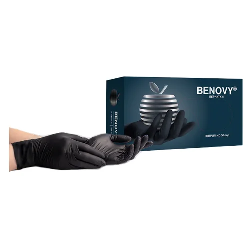Перчатки нитриловые Benovy Nitrile MultiColor р.S, 10г, черные, особопрочные, 50 пар