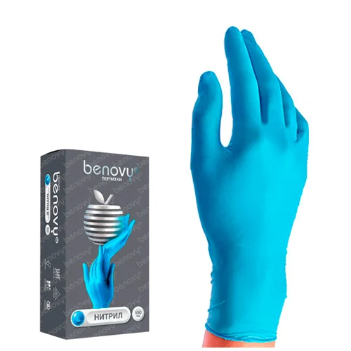 Перчатки нитриловые Benovy Nitrile Chlorinated BS р.XL, голубые, 100 пар