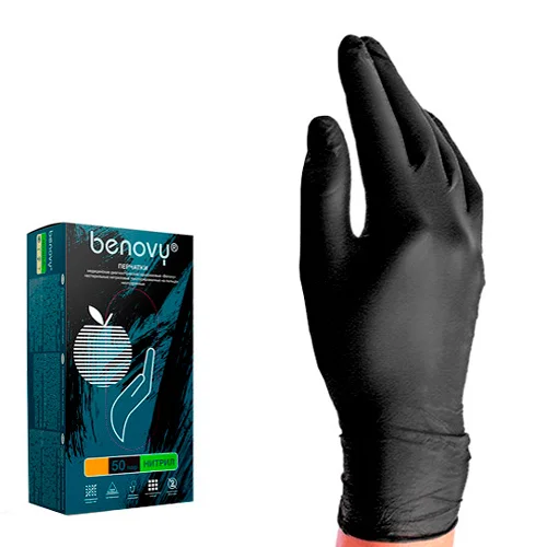 Перчатки нитриловые Benovy Nitrile MultiColor BS р.L, черные, 50 пар