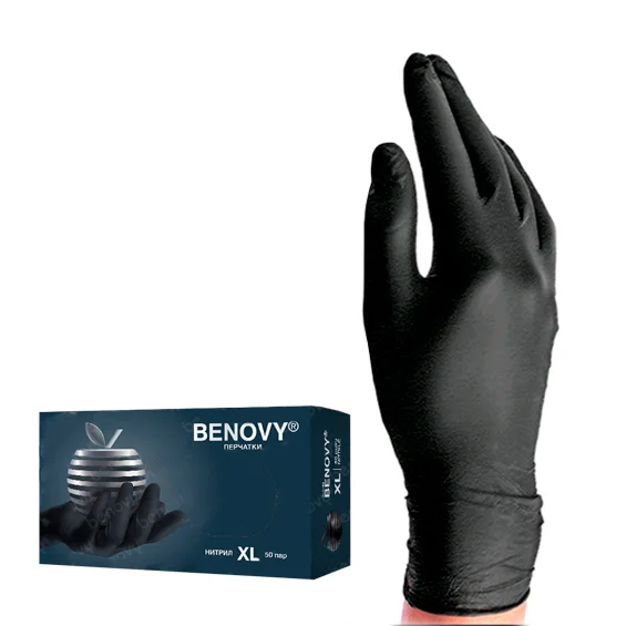 Перчатки нитриловые Benovy Nitrile MultiColor BS р.XS, 7г, черные, 50 пар