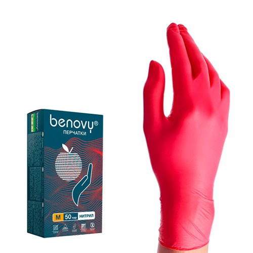 Перчатки нитриловые Benovy Nitrile MultiColor р.XL, 8г, красные, 50 пар