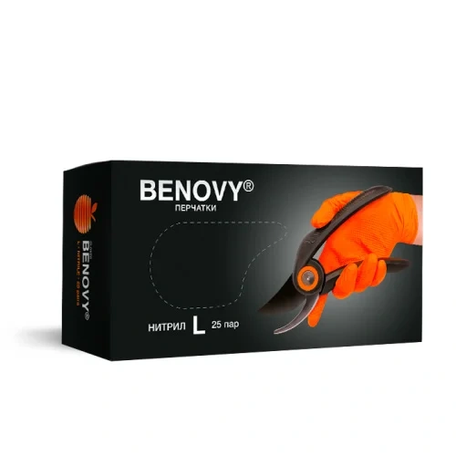 Перчатки нитриловые Benovy Nitrile Ultra Protection BS р.L, оранжевые, особопрочные, 25 пар