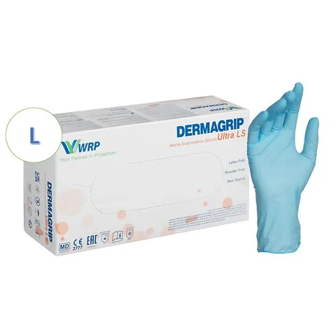 Перчатки нитриловые Dermagrip Ultra р.L, голубые, повышенной чувствительности, 50 пар