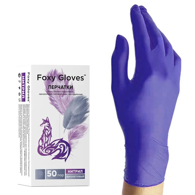 Перчатки нитриловые Foxy Gloves р.M, фиолетовые, 50 пар