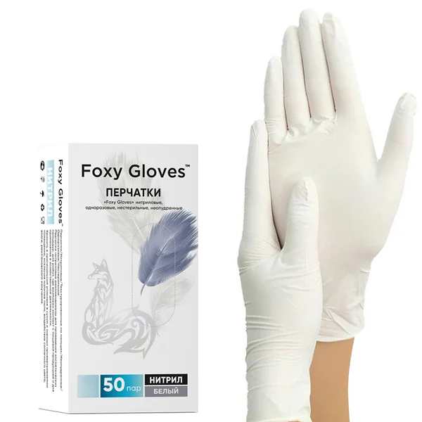 Перчатки нитриловые Foxy Gloves р.S, белые, 50 пар