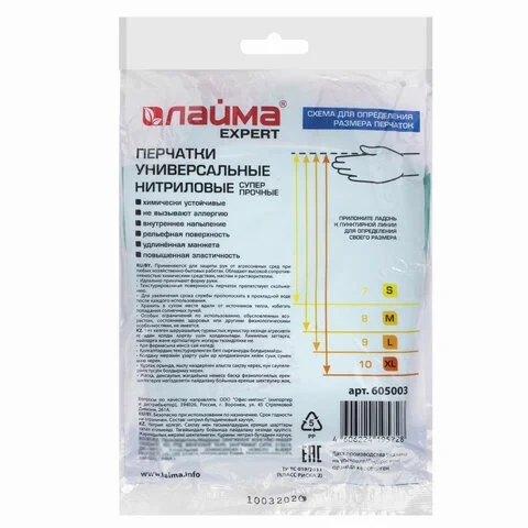 Перчатки нитриловые ЛАЙМА НИТРИЛ EXPERT, 80 гр/пара, химически устойчивые,гипоаллергенные, размер 10