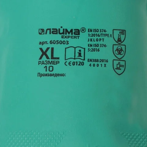 Изготовлены в соответствии с стандартами EN388: 2016, EN420: 2003+A1:2009, EN ISO 374-1:2016, EN374-2:2014, EN 16523-1:2015, EN 374-4:2013, EN ISO 374-5:2016, ГОСТ 12.4.278-2014.