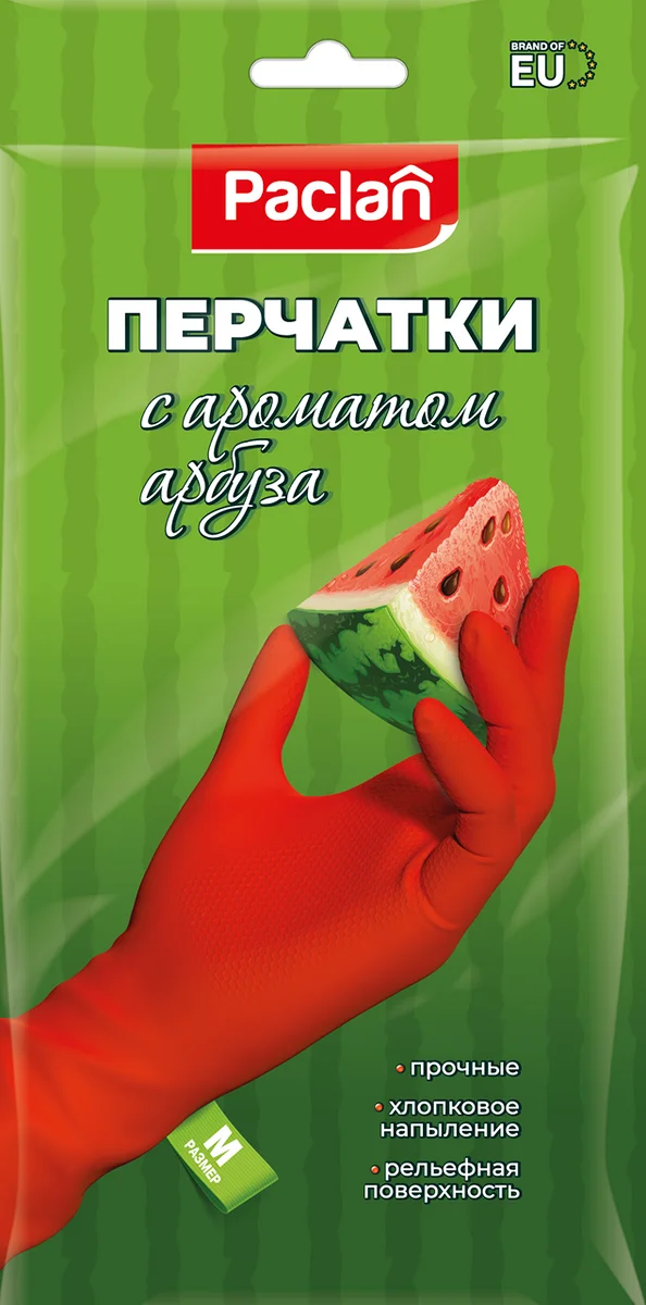 Перчатки Paclan резиновые с ароматом арбуза размер M