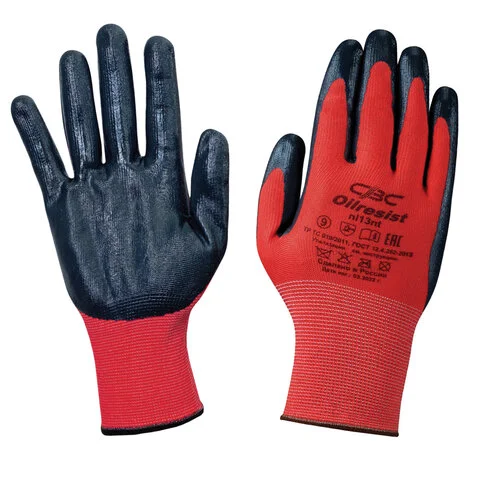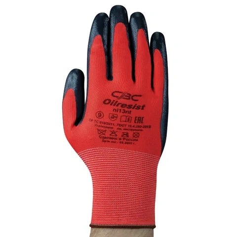 Перчатки полиэфирные ОИЛРЕЗИСТ маслобензостойкие 1 пара, 15 класс, 42-44 г, размер 9, покрытие - обл