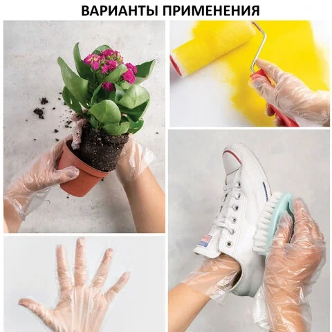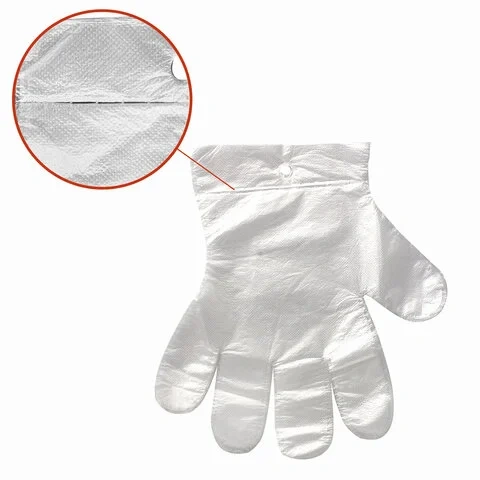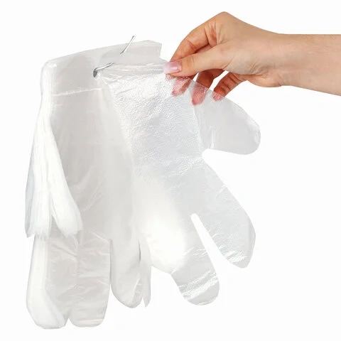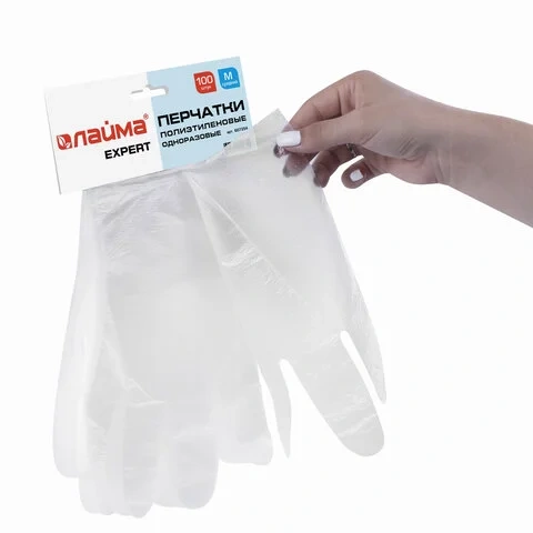 Одноразовые перчатки большого размера М выполнены из полиэтилена плотностью 6 микрон и имеют гладкий срез манжеты. Устойчивы к химическим средствам. Сохраняют тактильные ощущения. Отсутствие технической пудры на перчатках максимально уменьшает риск загрязнения как рук, так и продукции. 50 пар в упаковке. Поставляются в пакете с европодвесом.