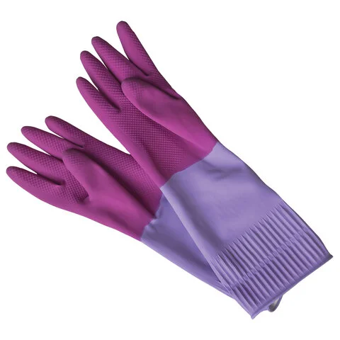 Перчатки резиновые, х/б напыление, рифленые пальцы, размер L, Роза, 75 г, ПРОЧНЫЕ, с удлиненной манж