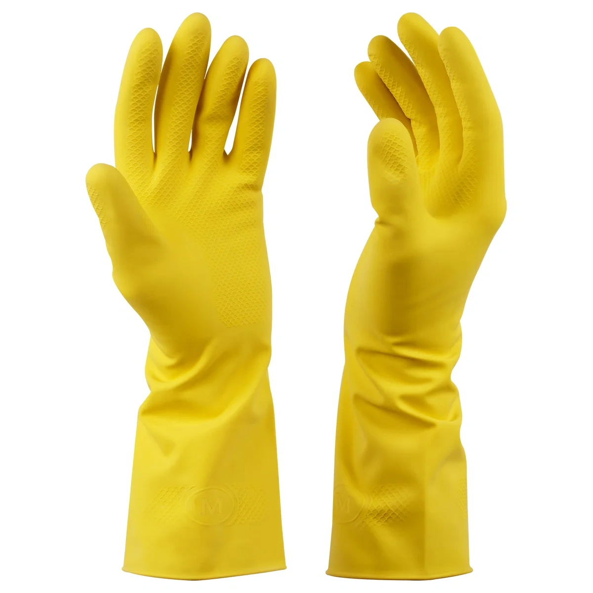 Перчатки резиновые (латексные) хозяйственные OfficeClean «ПРЕМИУМ» предназначены для защиты рук от воздействия моющих, чистящих средств, а также влаги и грязи во время уборки, мытья посуды, садовых работ. Перчатки выполнены из натурального латекса, цвет – жёлтый, размер – M. Плотность – 350 гр./м2. В упаковке 1 пара.