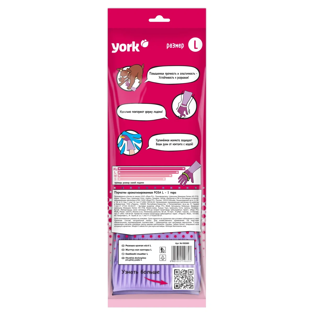 Перчатки резиновые хозяйственные York 'Рози', многоразовые, с удлиненной манжетой, хлопчатобумажное