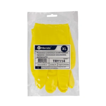 Перчатки резиновые Merida р.XL, желтые, с хлопковым напылением