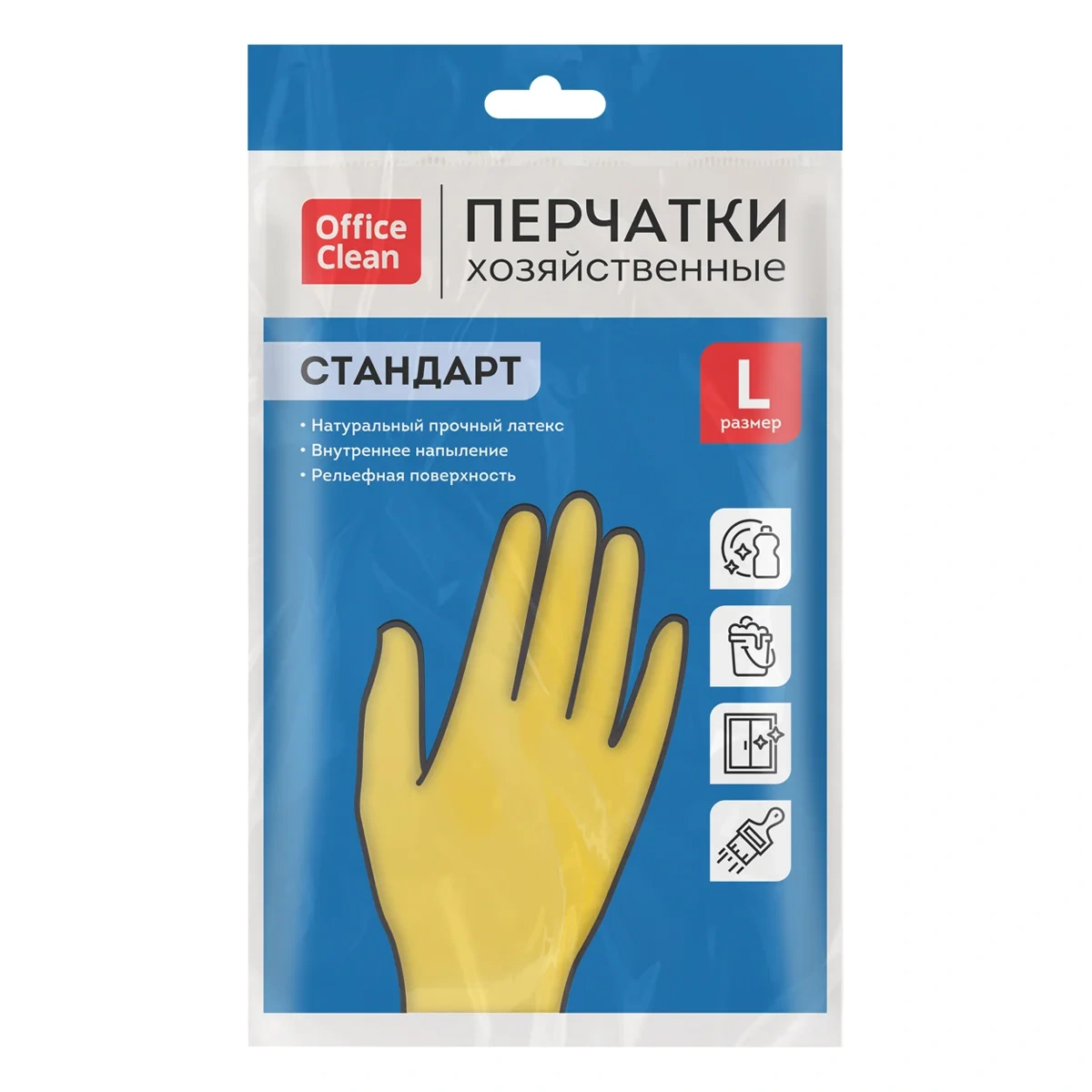 Перчатки резиновые Officeclean Стандарт+ р.L, желтые, суперпрочные