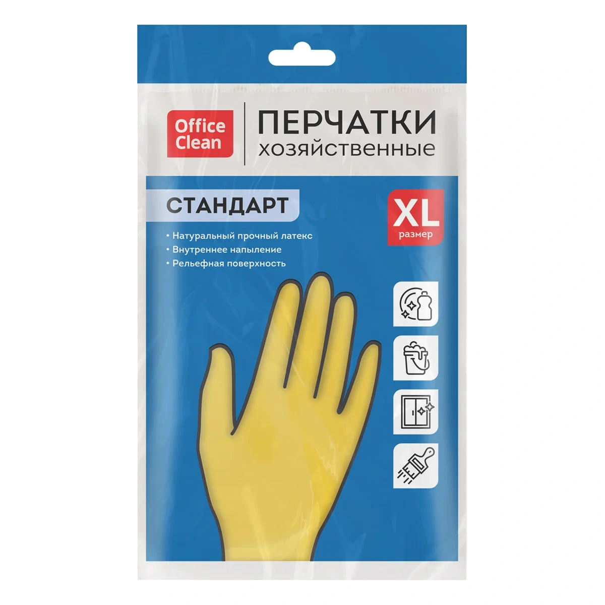 Перчатки резиновые Officeclean Стандарт+ р.XL, желтые, суперпрочные