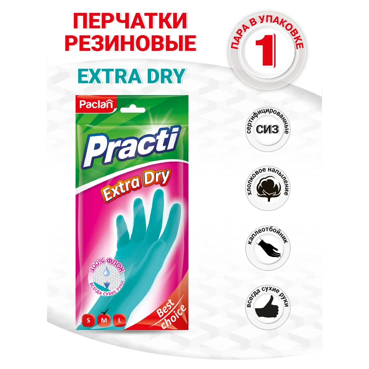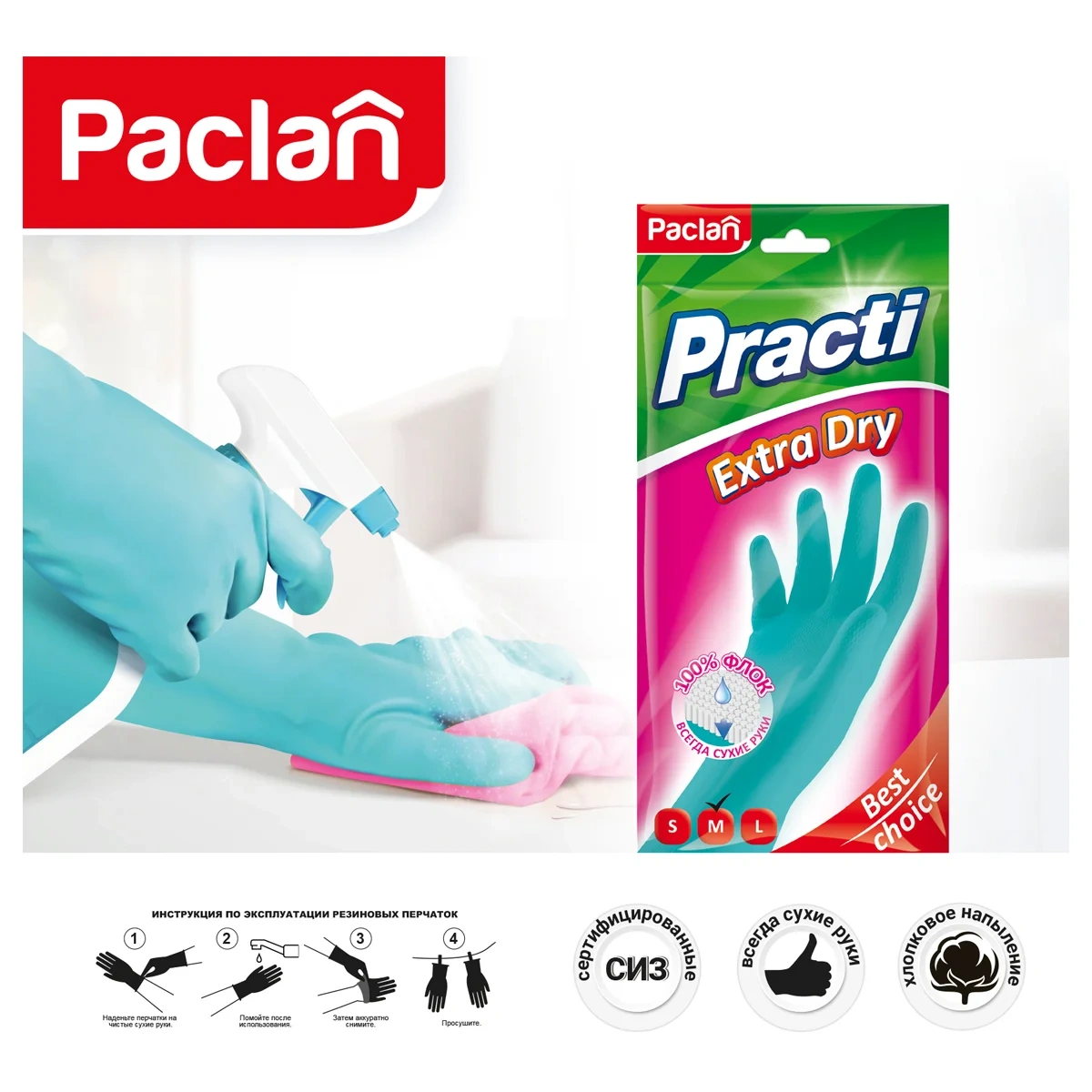 Перчатки резиновые Paclan 'Practi Extra Dry', M, цвет микс, пакет с европодвесом