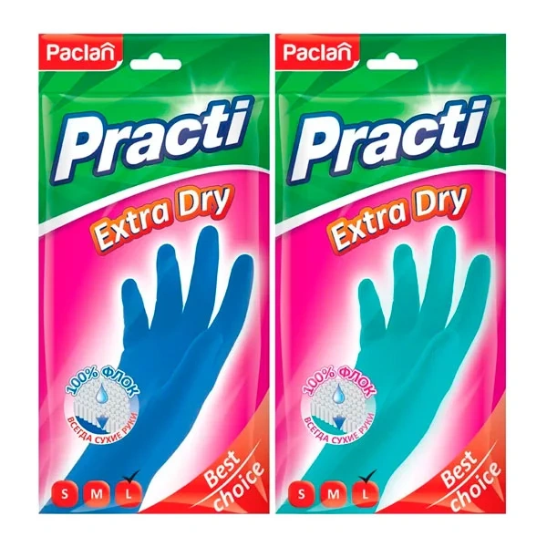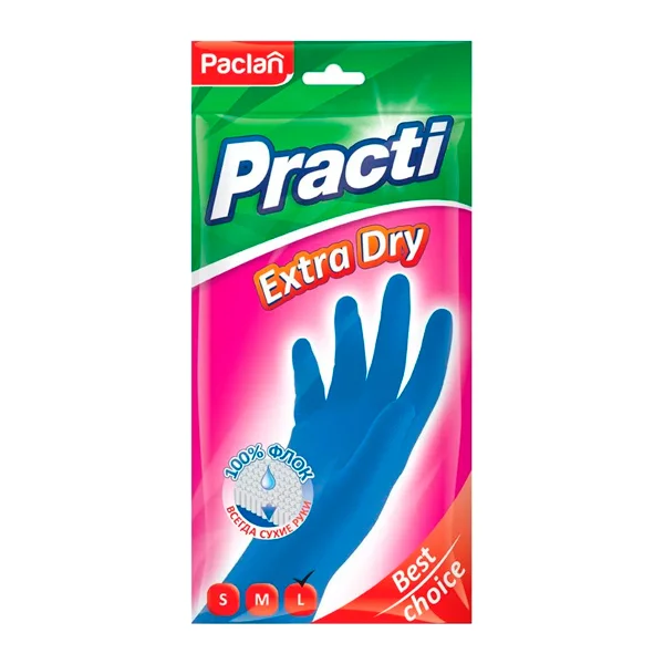Перчатки резиновые Paclan Practi Extra Dry р.L, ассорти