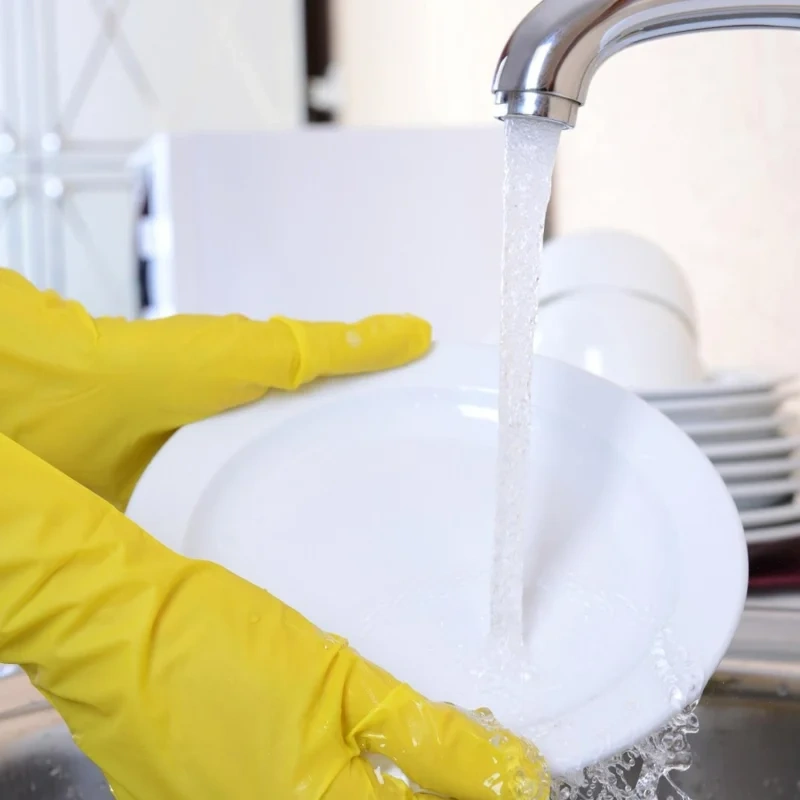 Перчатки хозяйственные латексные Paclan с внутренним хлопковым напылением, размер 9 (L). Манжета — закатанный край. Резиновые перчатки предназначены для защиты рук от вредного воздействия агрессивных моющих и чистящих веществ во время уборки, стирки, мытья автомобиля, садовых работ. Длина перчаток от манжеты до кончика среднего пальца — 29.5 см.
