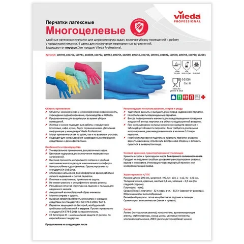 Перчатки Многоцелевые от Vileda Professional из латекса, размер XL, предназначены для профессиональной уборки и другого широкого круга задач, включая уборку помещений и работу с продуктами питания. Защищают от вирусов. Перчатки Многоцелевые эффективно защищают руки во время уборки. Подходят для использования с разведенными моющими средствами и дезинфектантами. Перчатки с ограничением подходят для работы с продуктами питания в столовых, кафе, барах и на кухнях. Применимы для работы на сухих и влажных участках.