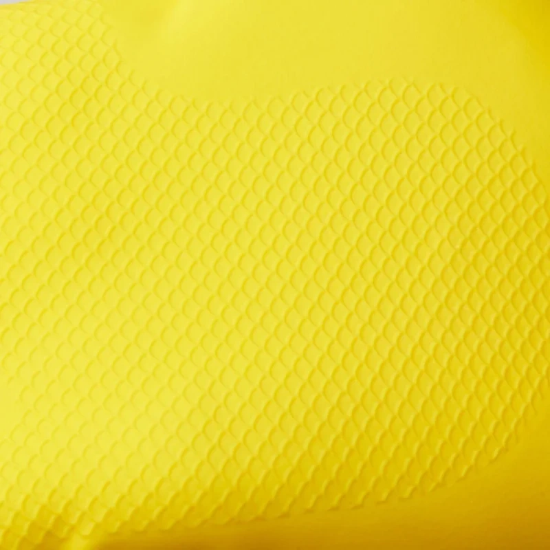 Характеристики: Размер: длина — 29 см, ширина — 11 см. Толщина: 0.35 мм по гладкой стороне. Средний вес без упаковки 1 пары — 46.7 г. (зависит от размера). Состав: латекс (натуральная резина), наполнитель, вулканизирующие агенты, стабилизаторы, оксид цинка, цветовые пигменты, хлопковое напыление, ZDEC (диэтилдитиокарбамат цинка).