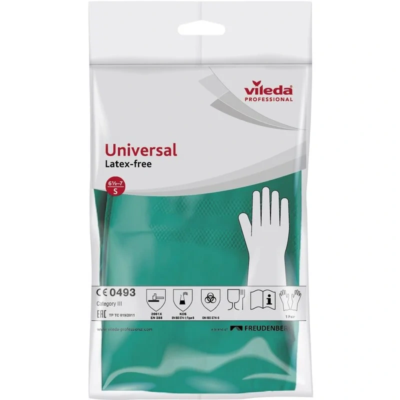 Перчатки резиновые Vileda Professional зеленые универсальные, S, 100800