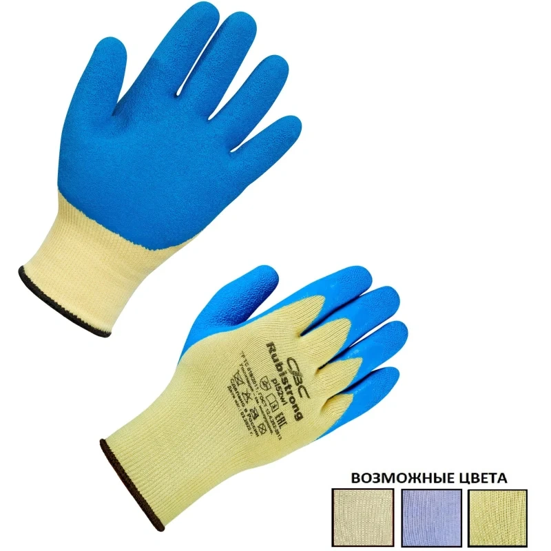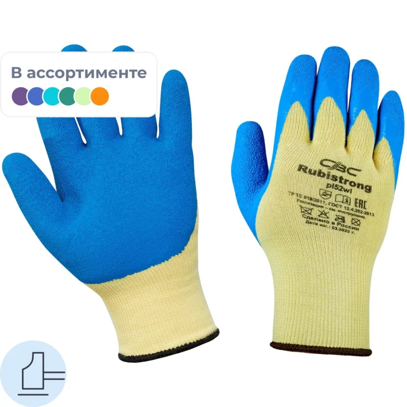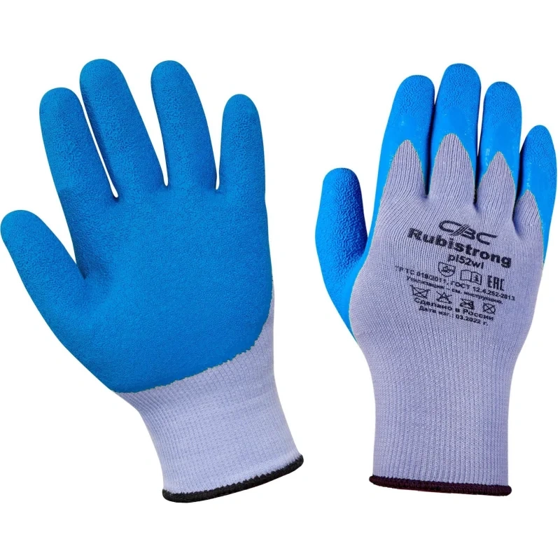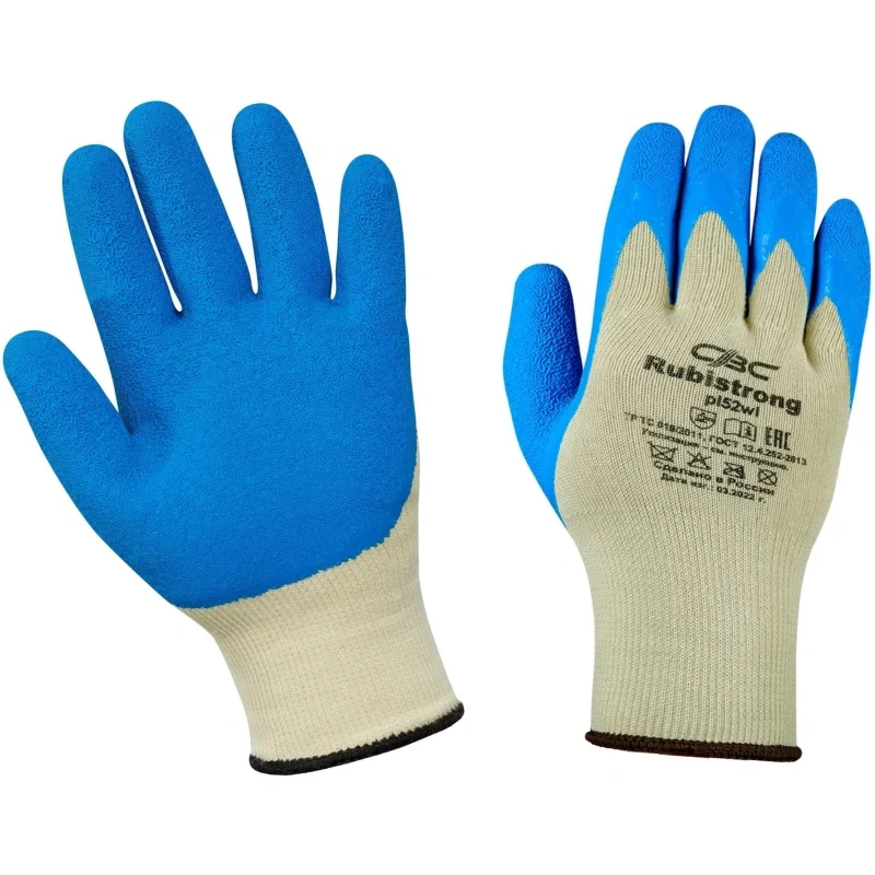 Перчатки рабочие защитные СВС Rubistrong трикотажные с латексным текстурированным покрытием белые/синие (13 класс, универсальный размер) рl52wl. Универсальные рабочие полиэфирные перчатки с сплошным латексным покрытием предназначены для защиты от мелких механических повреждений и загрязнений в различных производственных условиях. Перчатки имеют универсальный размер и подходят для использования в строительных, погрузочно-разгрузочных работах, а также для общепромышленного применения.